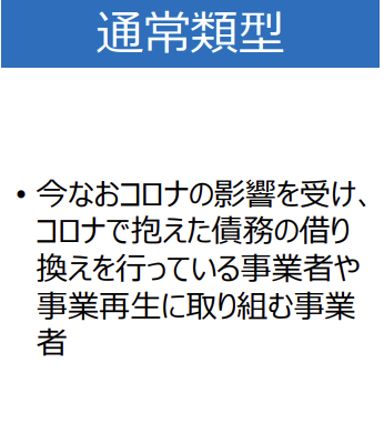また今尚コロナウイルスの影響を受けており、その影響で抱えた債務の借り換えを現在も行っている事業者については、対象となる可能性がございます。